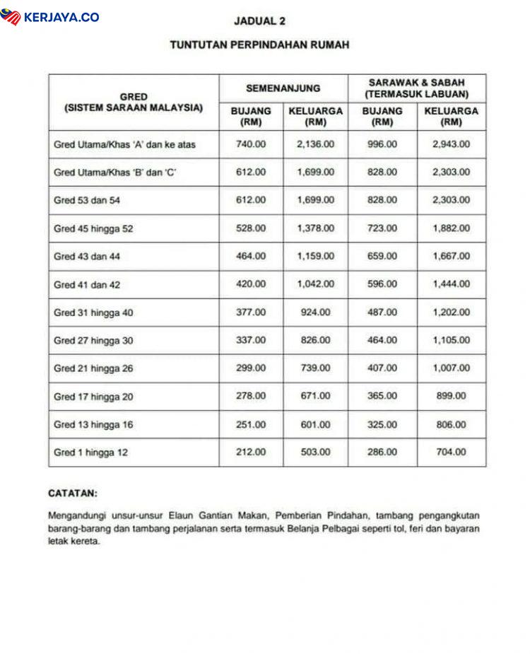 Berikut adalah kadar elaun pindah rumah yang akan diterima mengikut Gred dan status pekahwinan.