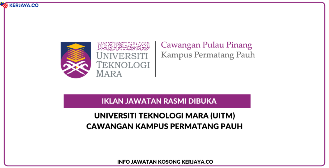 Universiti Teknologi Mara (UiTM) Cawangan Pulau Pinang Kampus Permatang Pauh ~ Kekosongan Jawatan Pensyarah Universiti, Kerani, Pembantu Sukan, Pembantu Penyediaan Makanan & Pembantu Keselamatan