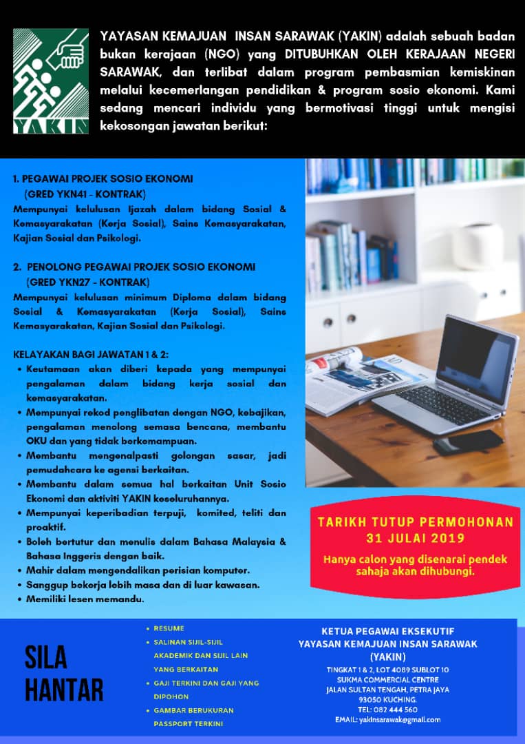 Permohonan Jawatan Kosong Yayasan Kemajuan Insan Sarawak (YAKIN).